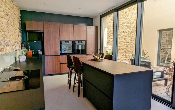 For Sale Gallargues le montueux, duplex village house of 180m fully renovated with garage and swimming pool. You will be seduced by the volumes and the quality of the renovation. You will appreciate the large living room with patio opening onto a wooden terrace and the swimming pool. upstairs 2 suites, 2 bedrooms with attic, shower room and a separate toilet. Quality services, rare in Gallargues. Close to schools and shops. Garage